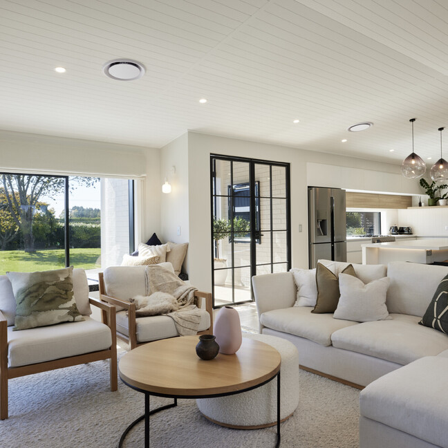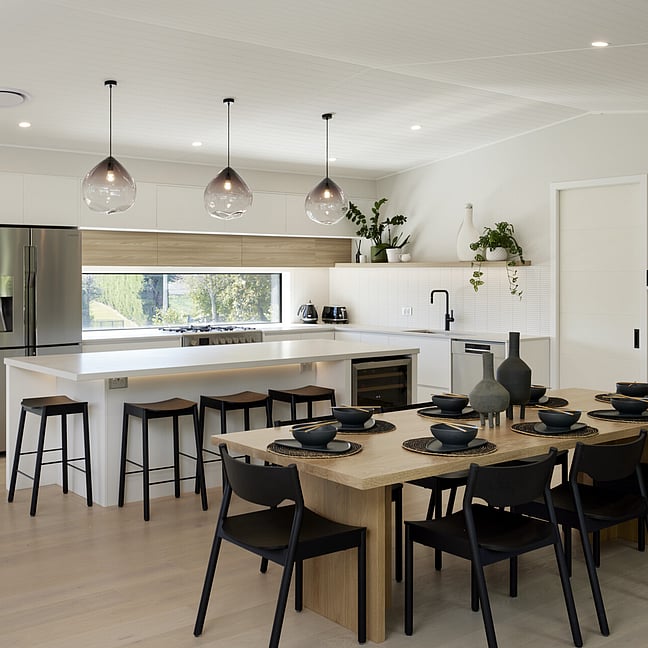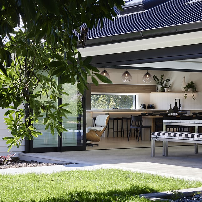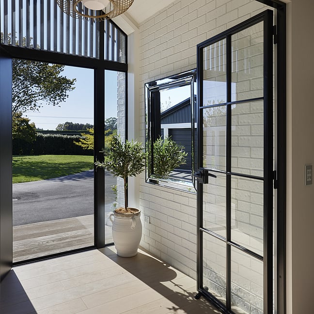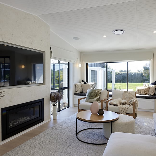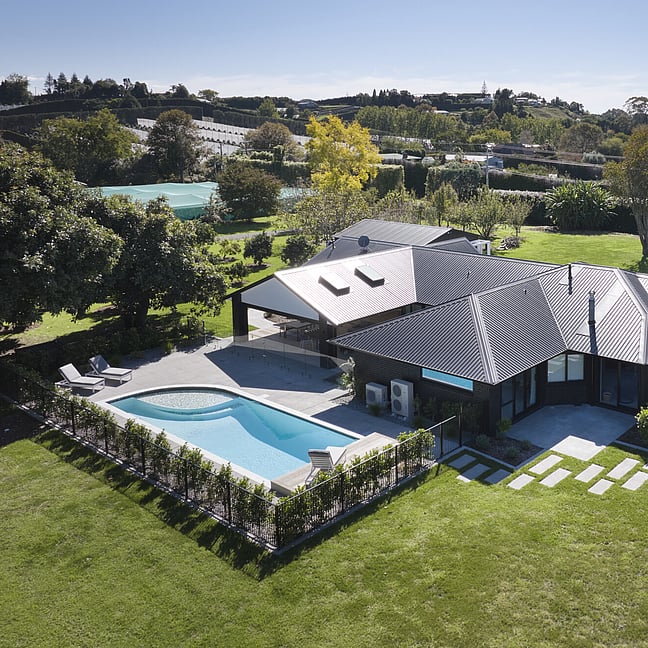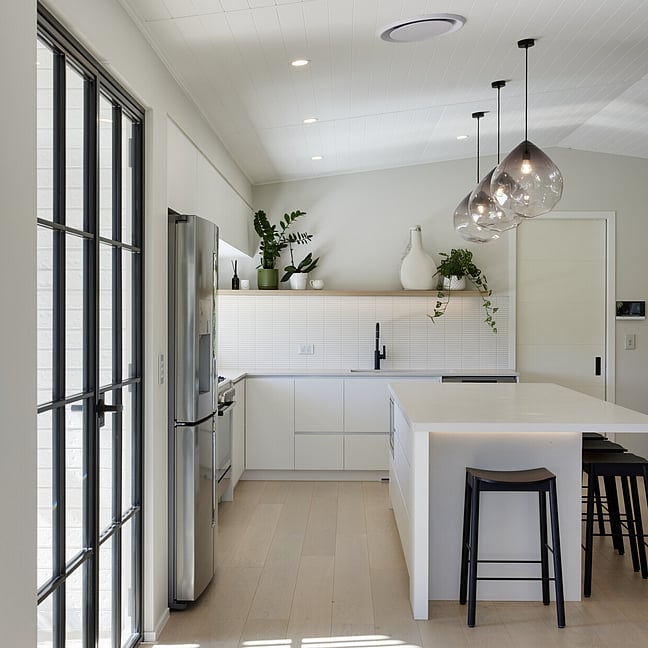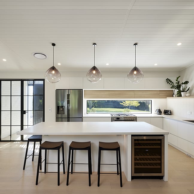 For clients living in semi-rural Te Puna on an idyllic, lifestyle sized property, the addition of a significant extension has substantially increased the original footprint to transform and create an expansive single level family home. With an exterior now rendered in the classic combination of crisp white weatherboards against a black long-run roof, black joinery and black painted brickwork, the new addition blends seamlessly with the existing building.
