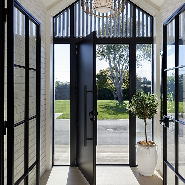 Extensive glazing is a feature with tall crittall-style doors opening from the elegant front entrance hall lined with white painted brick, to a light filled home designed for ease of entertaining. A sleek stylish kitchen and scullery, fabulous wide window seat perfect for relaxing in the sun, and spacious living flow effortlessly to covered sky-lit outdoor dining and an in-ground pool re-designed courtesy of Hamish Lane Landscapes.