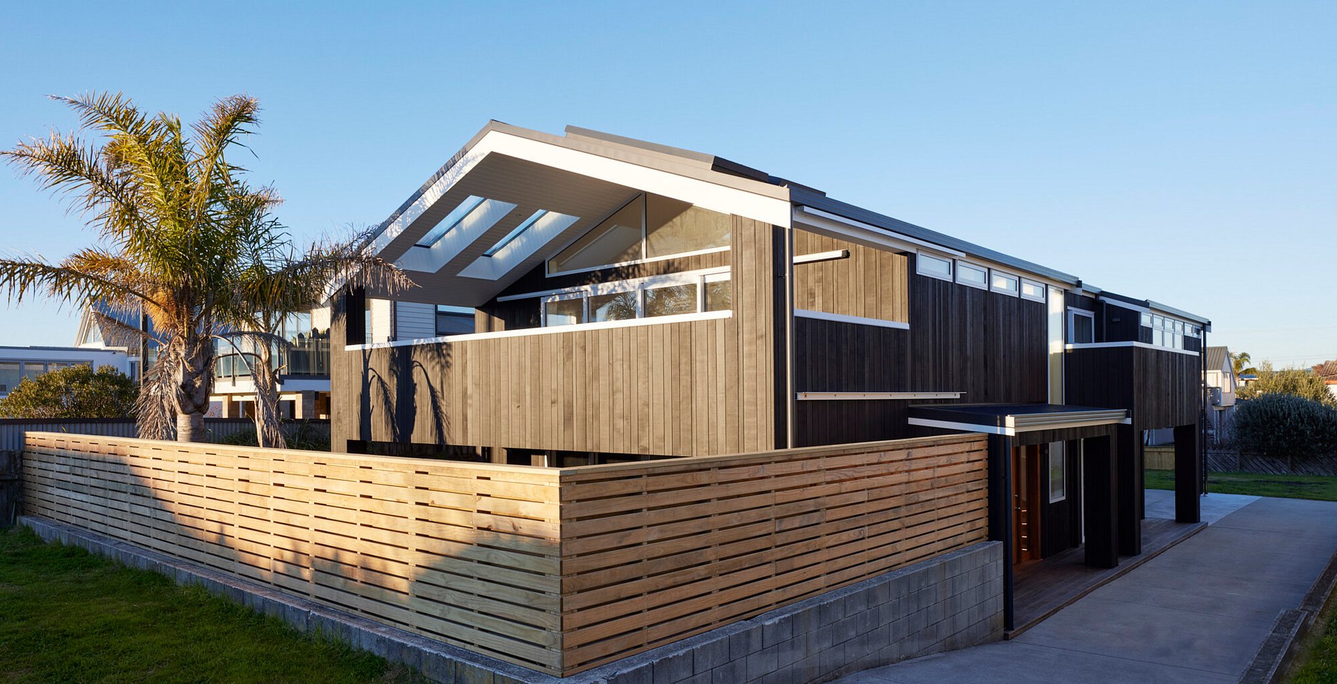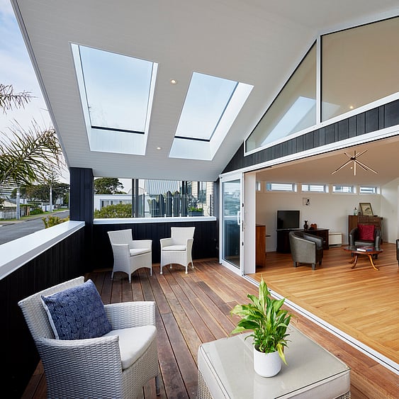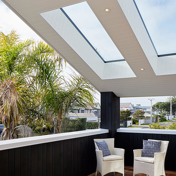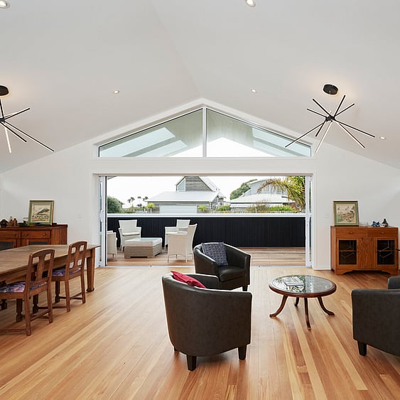 Original rimu floors and stairs were refinished to our exacting standards while the sleek white kitchen invites entertaining and enjoyment of fun times with family and friends. Spacious, L-shaped open plan living and dining are flooded with additional natural light from multiple skylights, and flow out to decks perfect for relaxed dining alfresco while taking advantage of beach views. And with new wrap around decks at ground level, garden and lawn maintenance is a thing of the distant past.