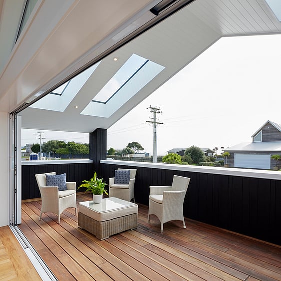 Except for the existing bathrooms, our team worked on every part of this home, inside and out – from the new roof, gutters and spouting to the new fence. Crisp white double glazed joinery contrasts against sharp black weatherboard, replacing tired cladding and improving structural integrity and durability against salt laden sea breezes.